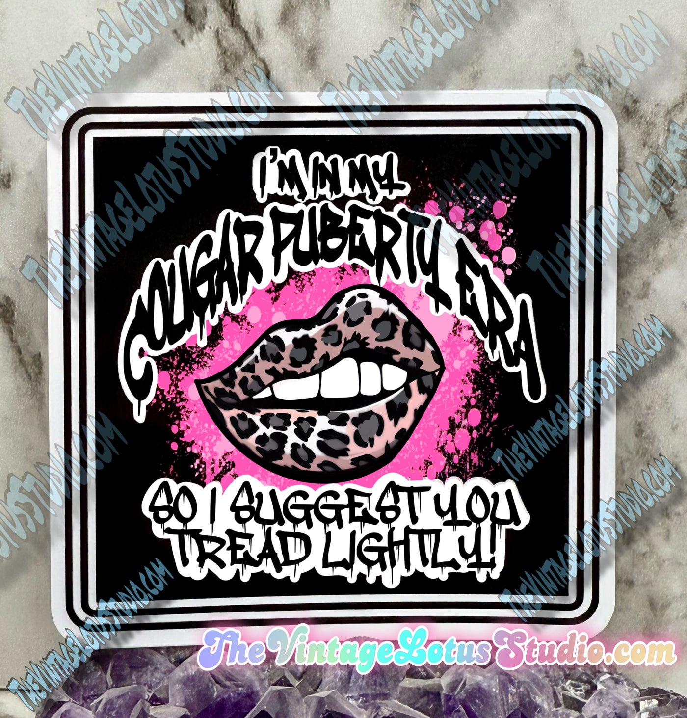 “ I’m in my cougar puberty era, so I suggest you tread lightly!” Vinyl Sticker